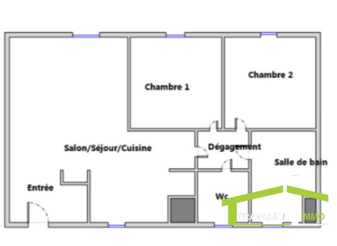 Située au rez-de-chaussée sur 1, appartement de type 3 comprenant Entrée avec placard, Séjour, Cuisine us entièrement équipée, 2 Chambres avec placard, Salle de bains (baignoire, vasque sur meuble), wc indépendant.