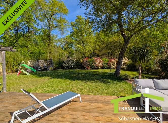 A l'extérieur, vous pourrez profiter de l'agréable jardin piscinable donnant sur la forêt et vous prélasser sur la très grande terrasse bois de 75m²